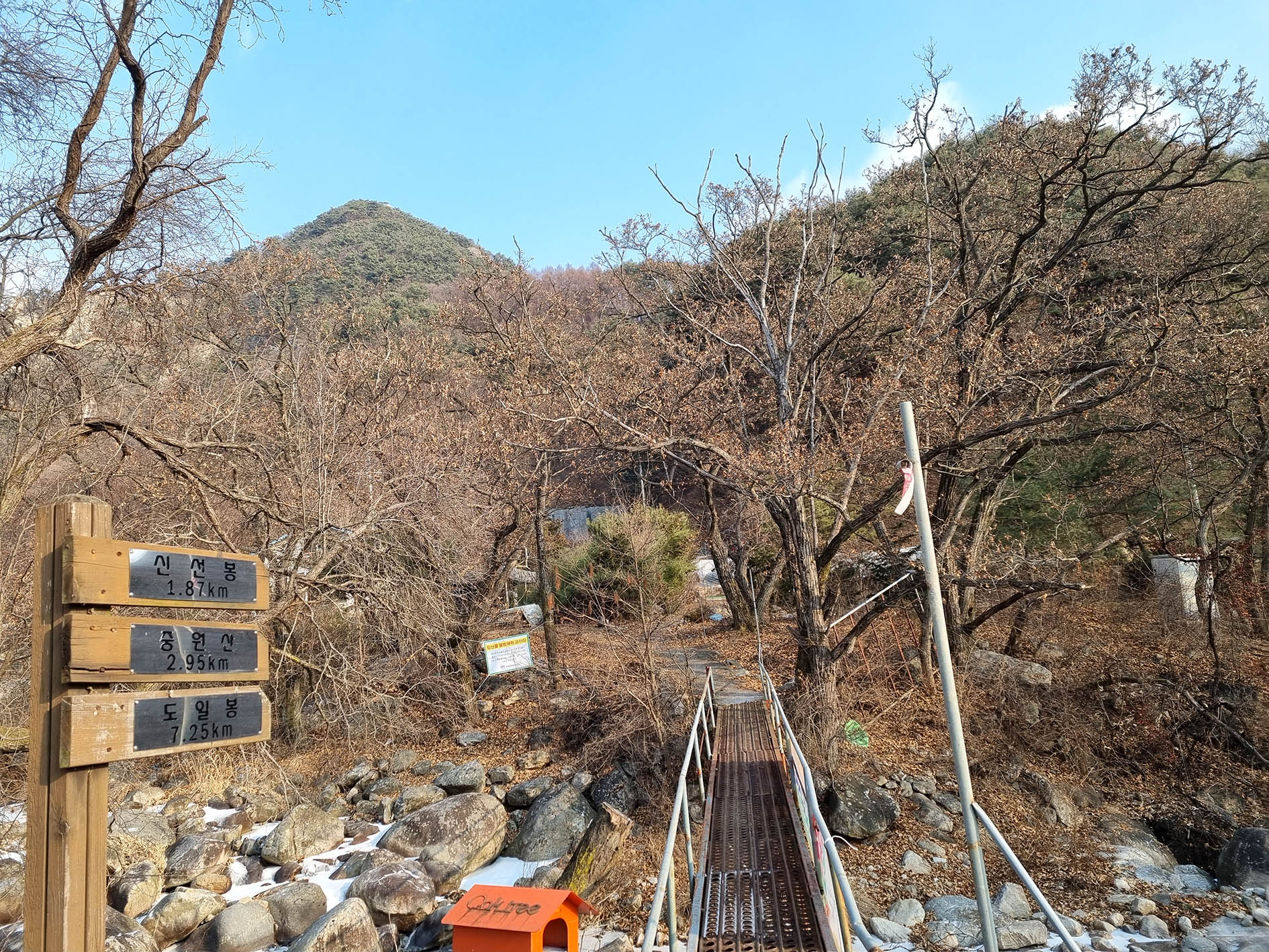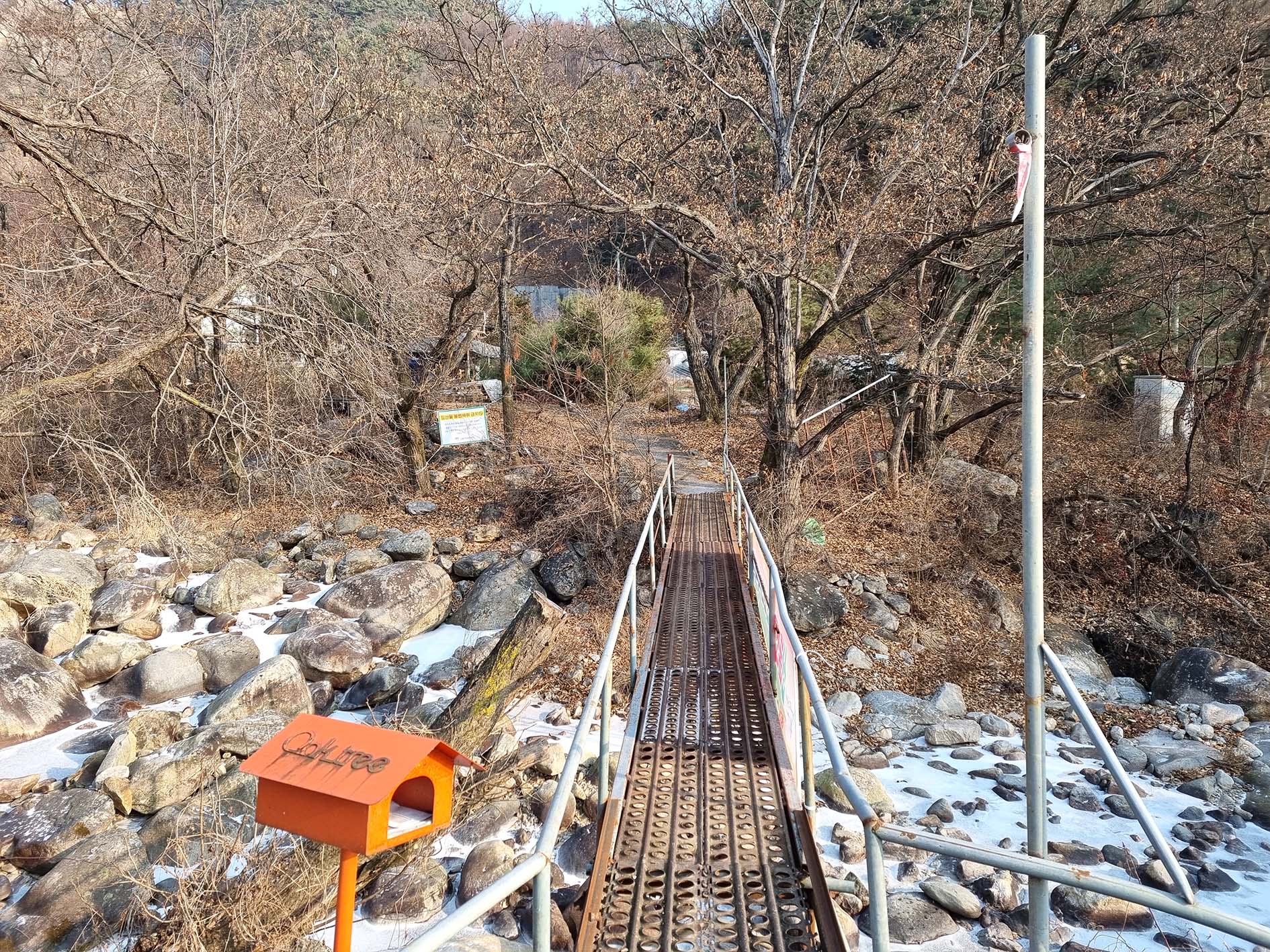입구 이정표를 따라 철다리를 건너간다.