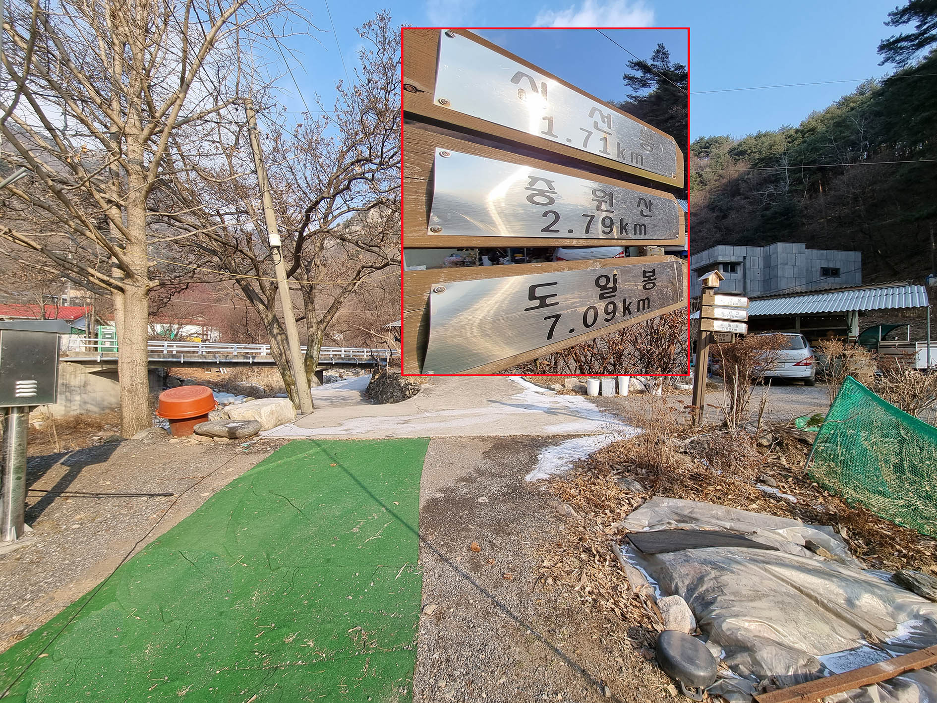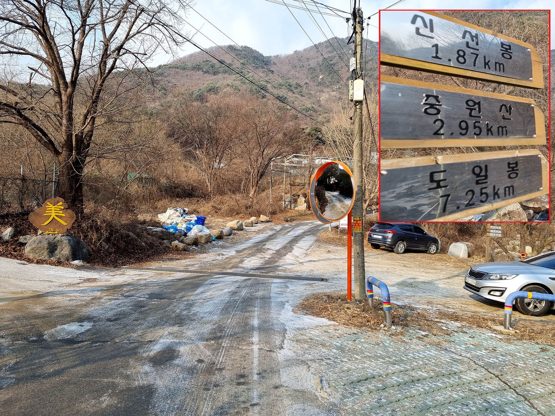 산행 들머리인 도성사 입구에는 소형차량 서너 대의 주차시설이 있다.
