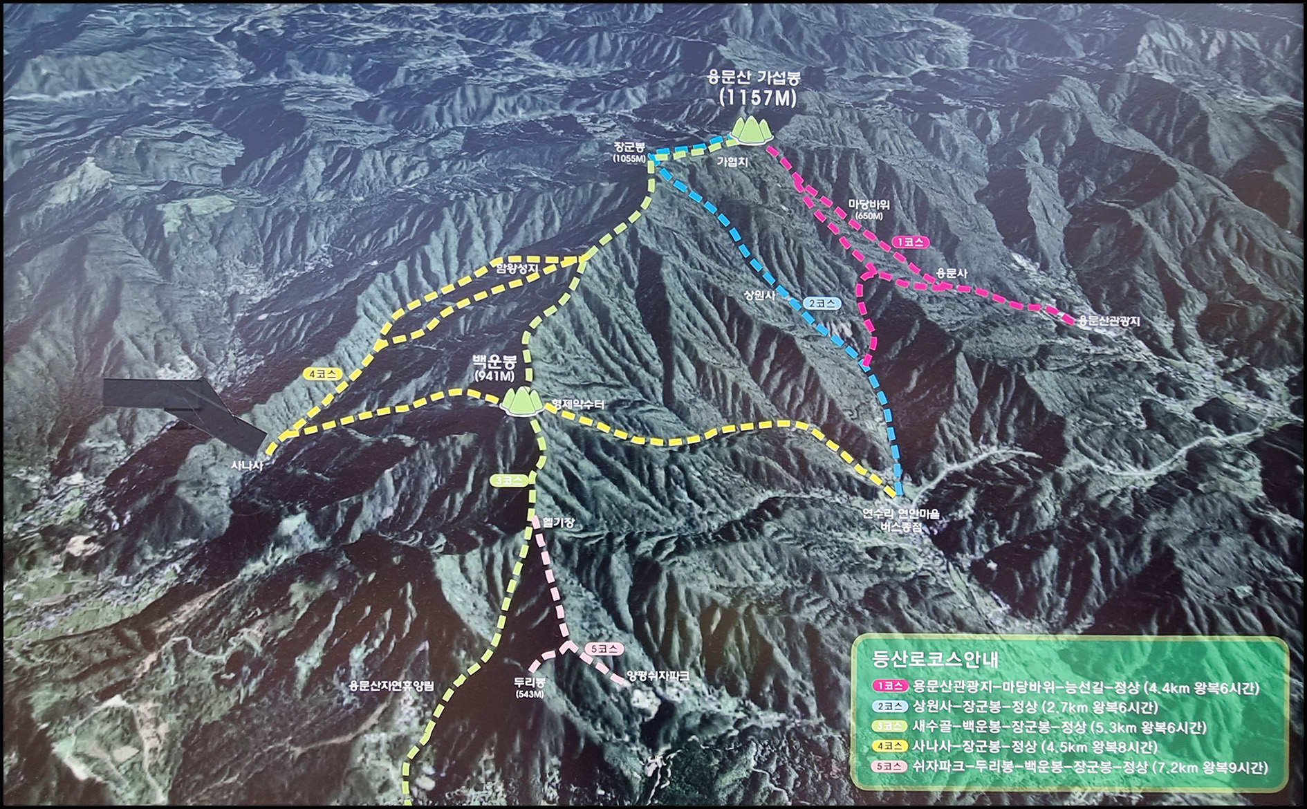 등산코스: 용문산 버스종점 - 도성사 입구 - 용조봉 - 신선봉 - 용계골 - 용문산 버스종점