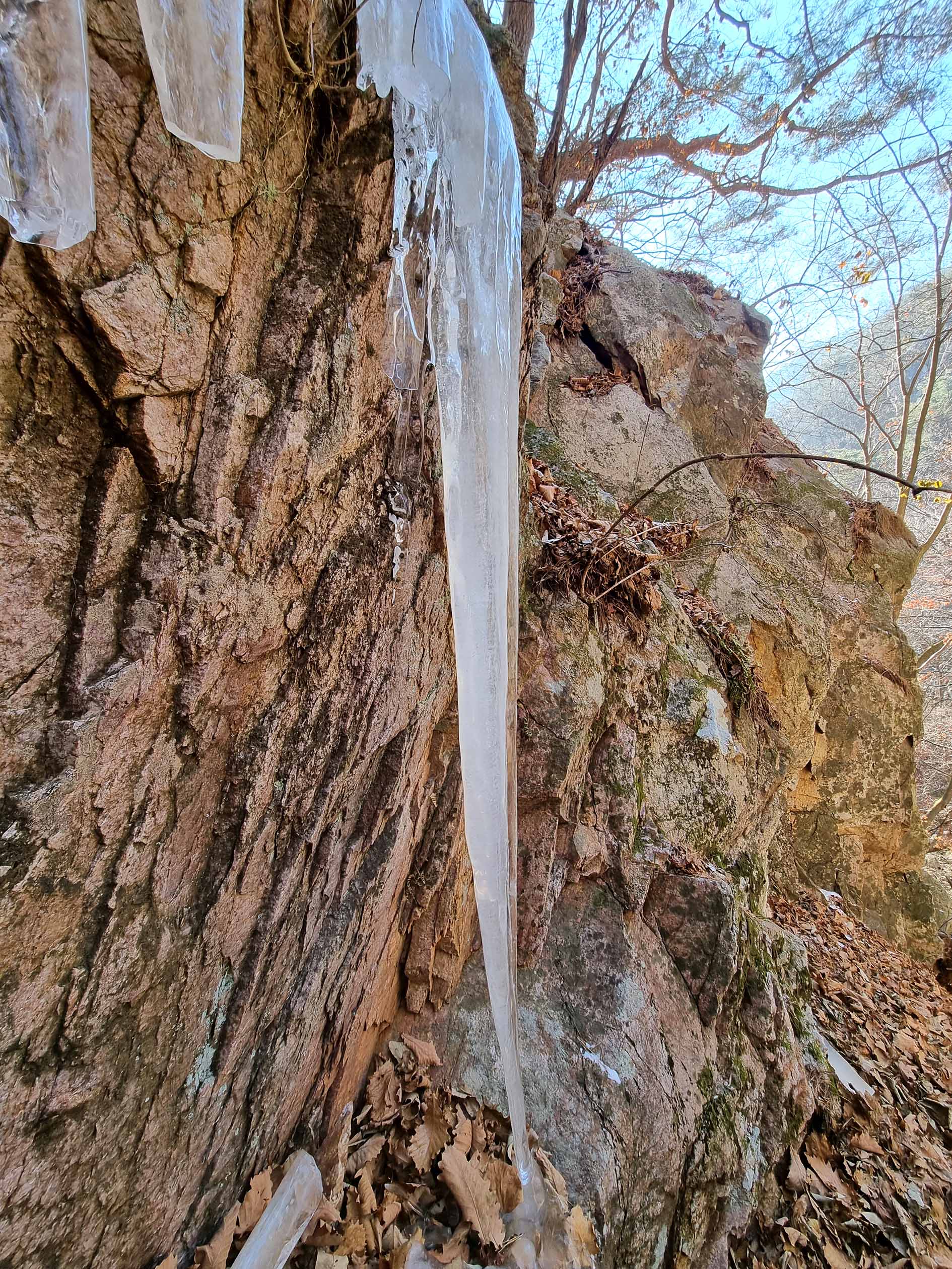 하산 중 용계골의 대형 고드름.