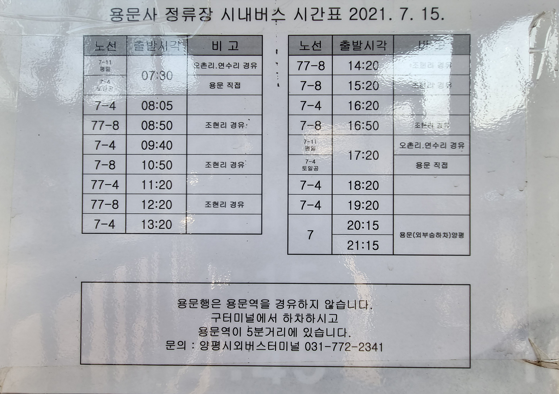 ▲용문사 버스 시간표▲