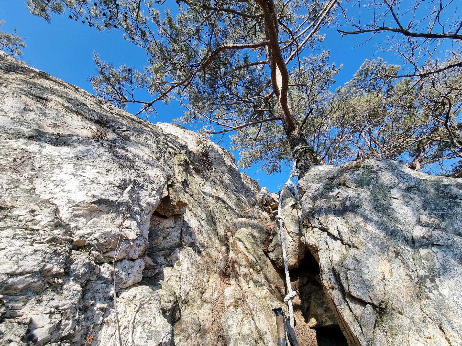 신선봉을 오르는 마지막 로프.