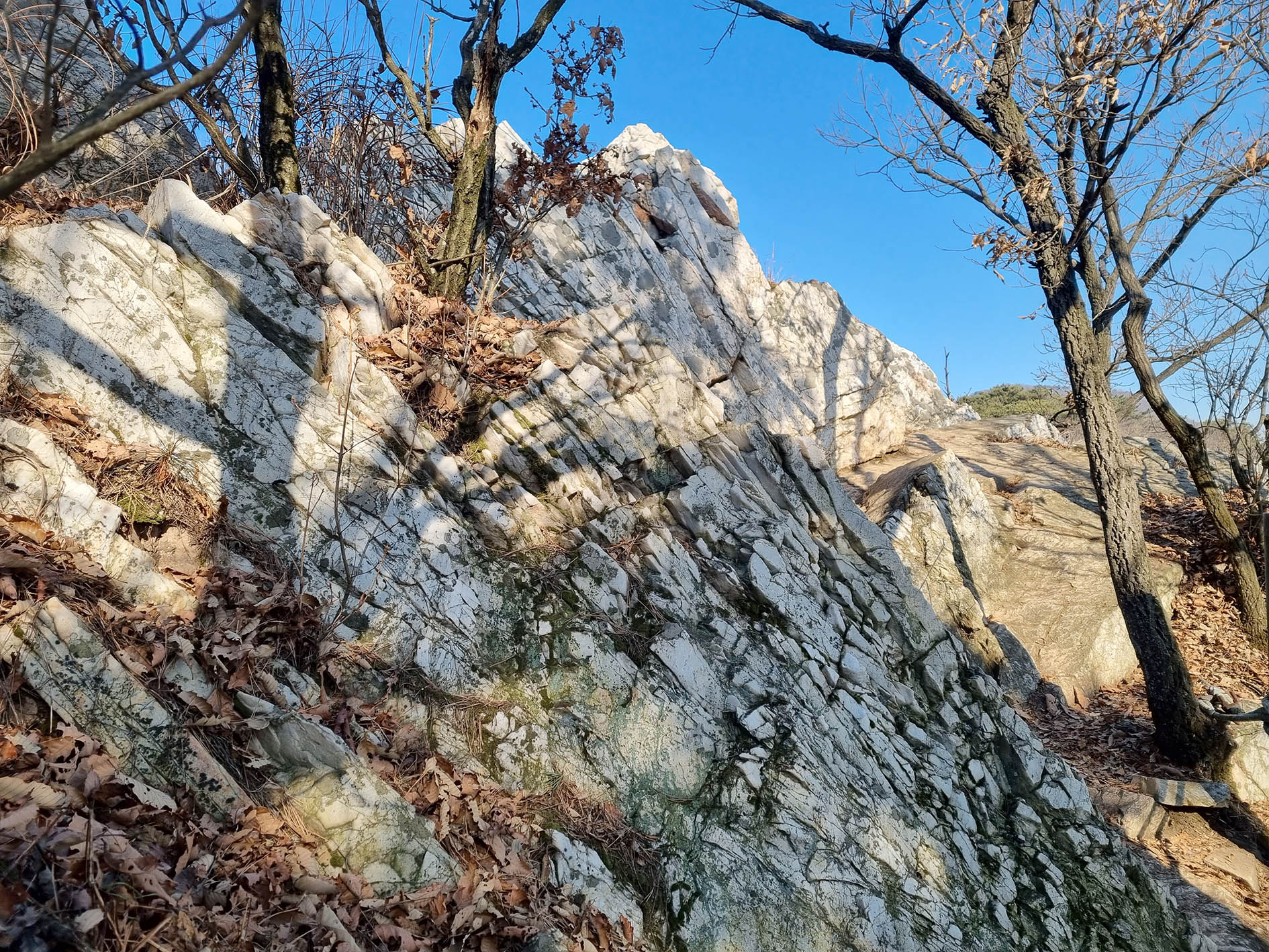 이곳을 지나면서부터는 수리산의 백미라고 할 수 있는 밧줄바위, 칼바위, 병풍바위가
