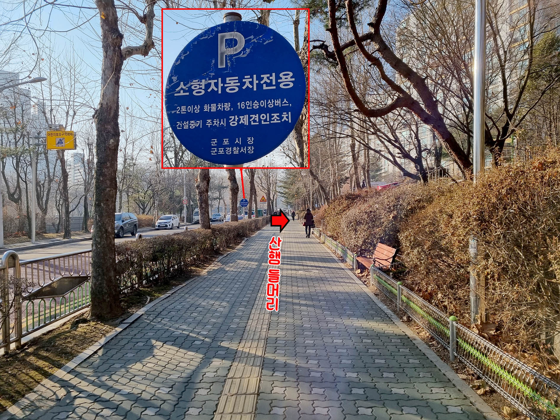 도장 초교 끝나는 지점에 담벼락을 끼고 우측으로 들어선다. (수리산역에서 약 200m 정도)