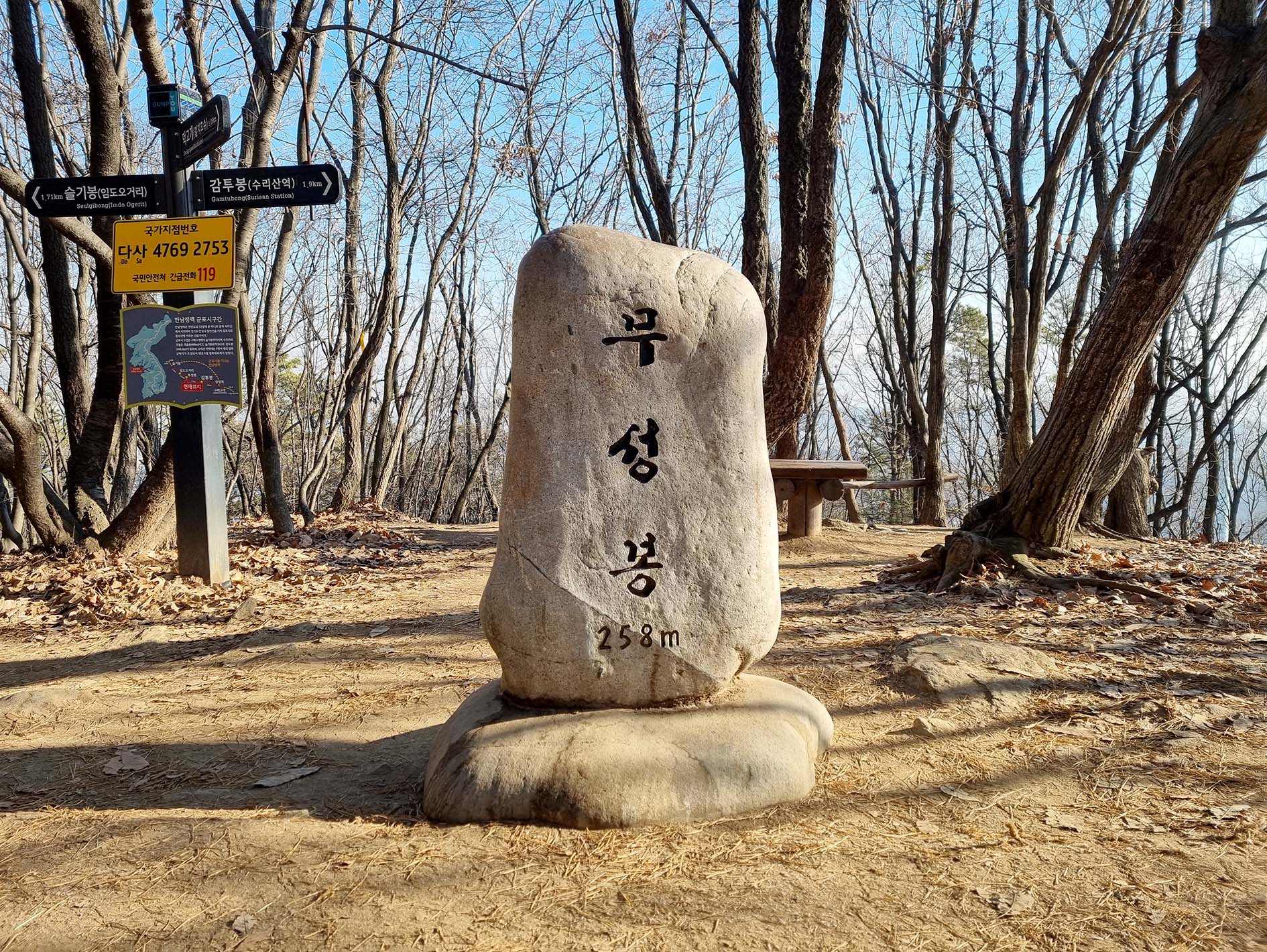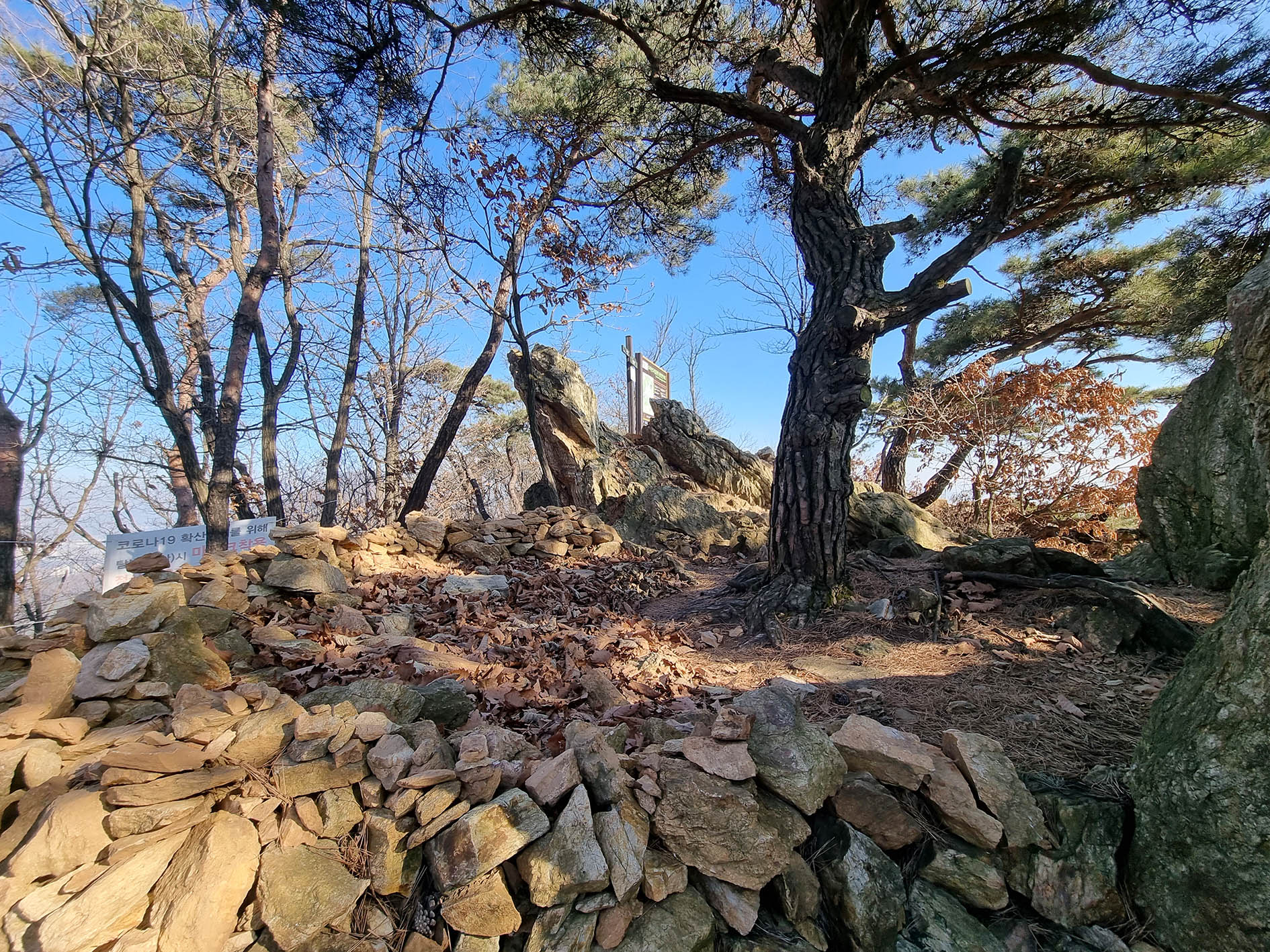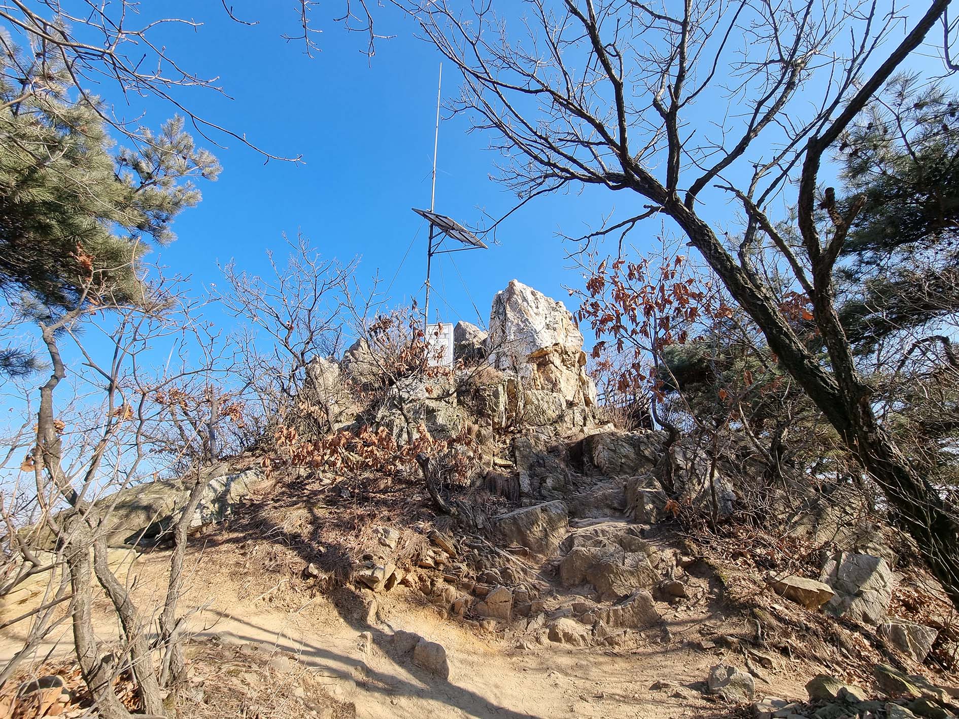 슬기봉 정상은 공군부대가 대신하며 부대 옆으로 슬기봉 표시가 있다.