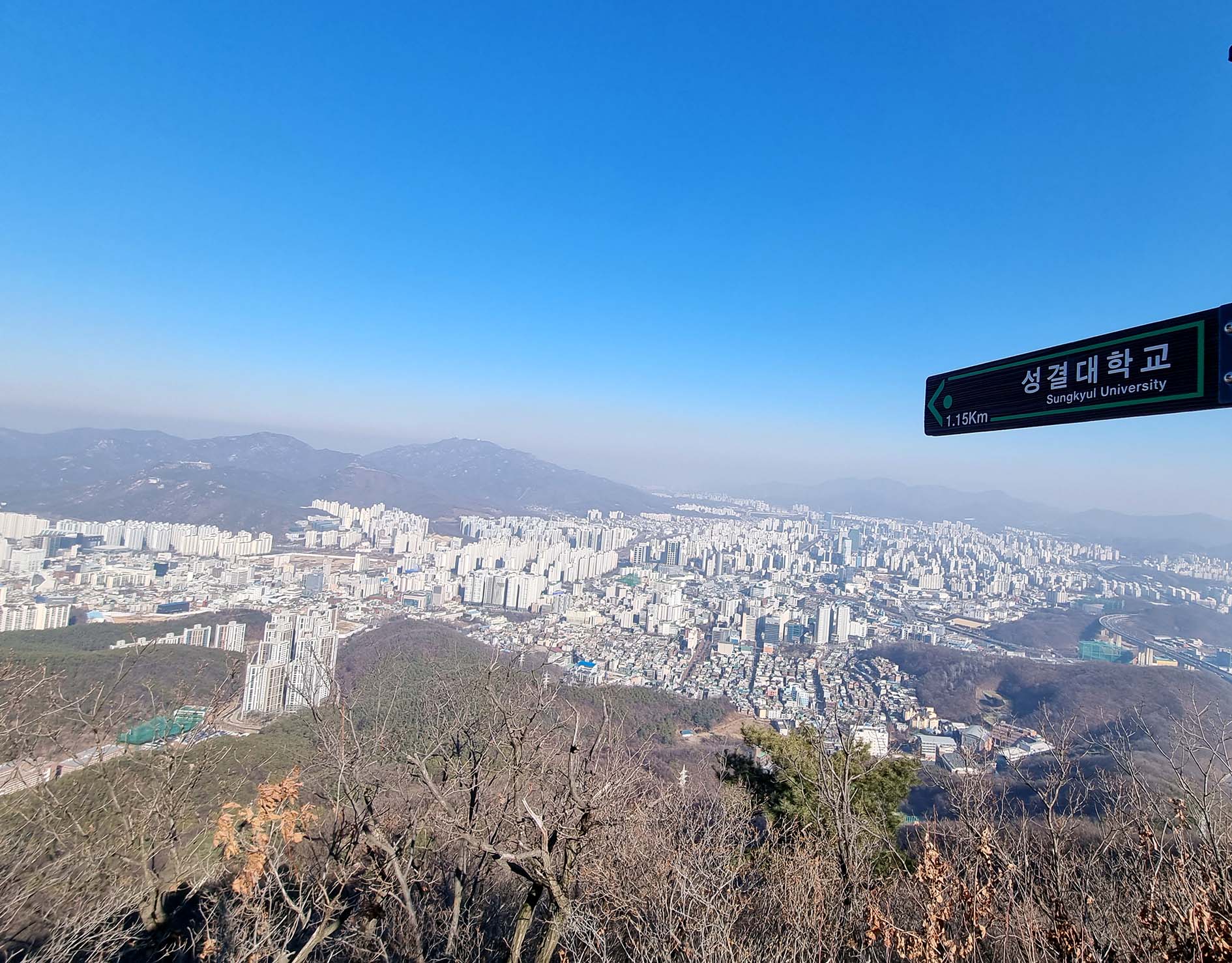 갈림길에서 우측 태을봉 방향으로 오르막길을 따라 올라가면 군포 시내를 한눈에