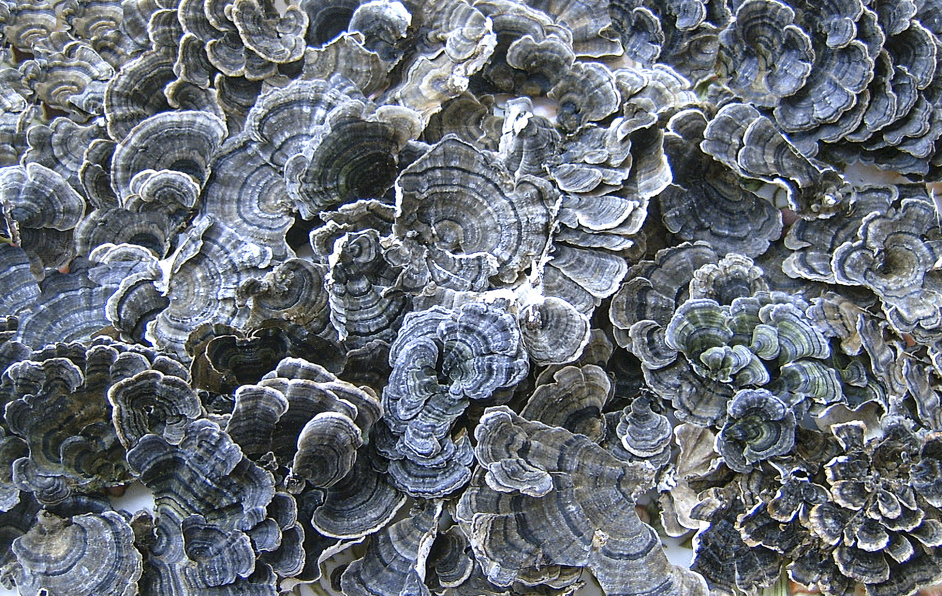 운지버섯이란 죽은 나무 몸통에 주로 발생하는 버섯이다. 구름처럼 뭉게뭉게 뭉쳐있는 모양으로 난다고 해서 구름버섯이라고도 한다. 갓의 폭은 1~5㎝이고 두께는 1~2㎜이고 얇고 단단한 가죽질이며 중첩되게 자란다. 표면은 흑색인데 회색, 황갈색, 암갈색, 흑색을 띠는 고리 무늬를 나타내고 짧은 털로 덮여 있다. 살은 백색이고 표면의 털 아래에는 암색의 피층이 발달한다. 자실층은 백색, 황색, 회갈색 등이며 관은 길이 1㎜ 정도로 구멍은 둥글고 1㎜에 3~5개 있다. 이 버섯에서 처음으로 버섯에 항암물질인 폴리사카라이드가 발견되었다 한다. 폴리사카라이드 성분은 면역 활성물질로 정상 세포의 독성은 거의 없으면서 면역체계에 도움을 주는 성분으로 알려져 있다고 한다. 운지는 사철 채취가 가능하지만 늦가을에 피어난 것이 제일 좋다고 볼 수 있다 윗부분은 아주 부드러운 융단 같은 면으로 연한 밤색에서 흑색으로 색이 깨끗하고 윤기가 나면서 찢어보면 속이 하얀 것이 좋다. 뒷면은 하얀색으로 오염이 되지 않고 깨끗해야 하며 특별한 맛과 냄새는 없다. 운지는 참나무류에서 난 것만 채취해서 드시는 것이 좋다고 합니다. 다른 나무에 난 것을 채취해 드시면 두통으로 인한 부작용이 생길 수도 있다고 합니다. 또한, 운지버섯과 닮은 버섯이 의외로 많이 있으므로 채취 시 각별히 조심해야 하며 확신이 없으면 주저하지 마사고 가던 길 그냥 가시면 됩니다.