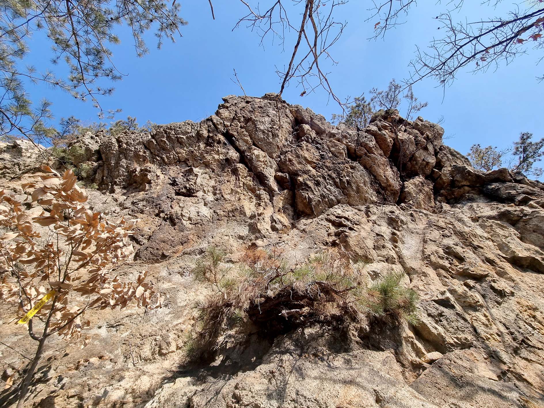 능선은 바위 봉우리로 되어 있고 소나무 군락 많아서 사계절 푸르름을 간직하고 있다.