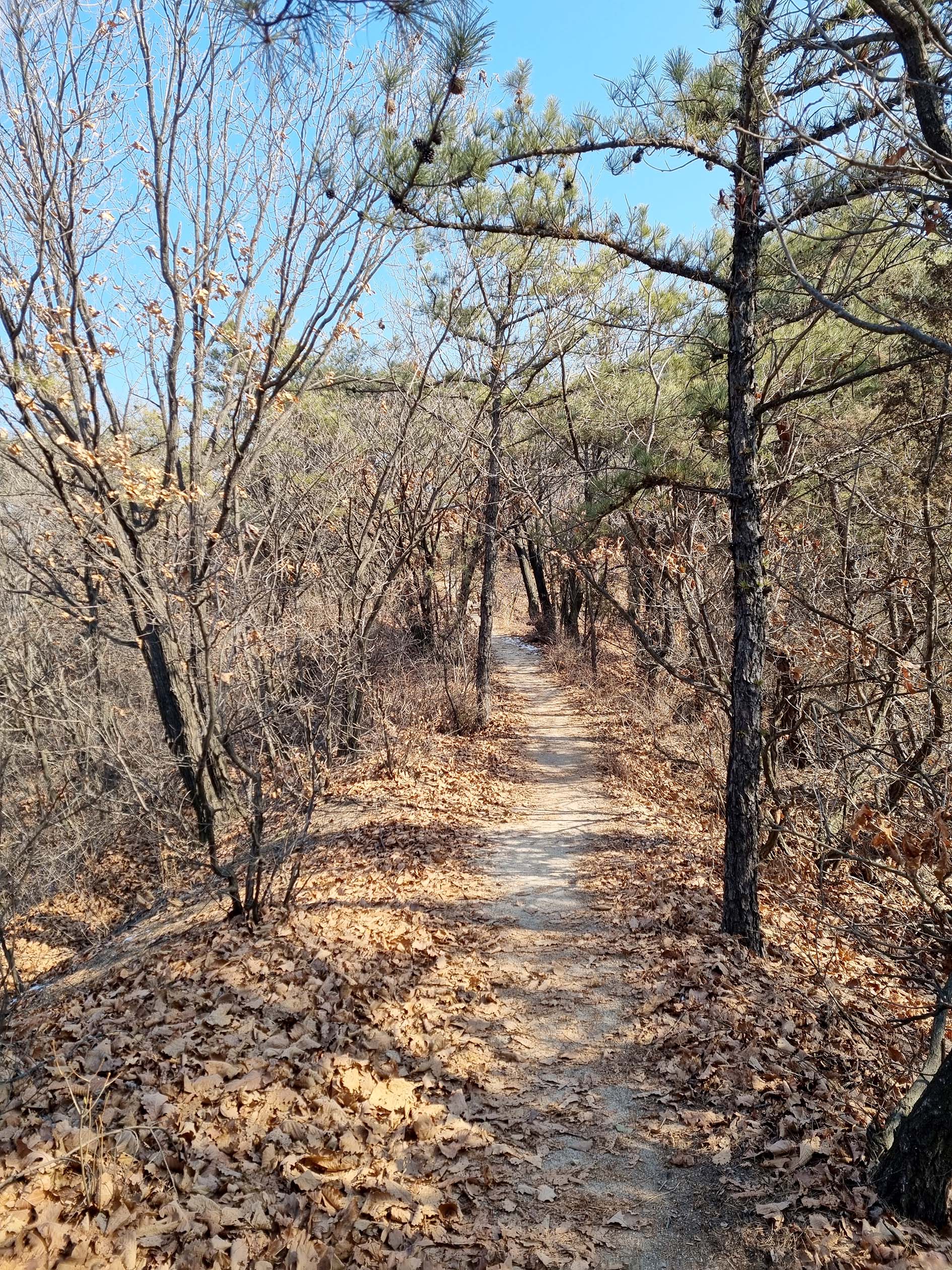 천보산맥의 편안한 숲 길.