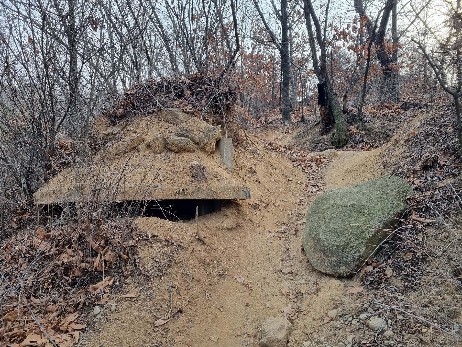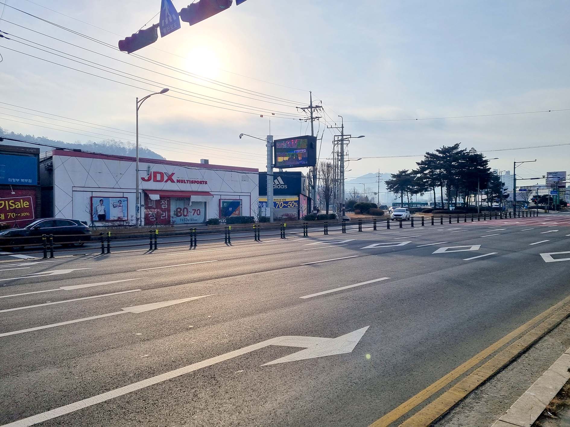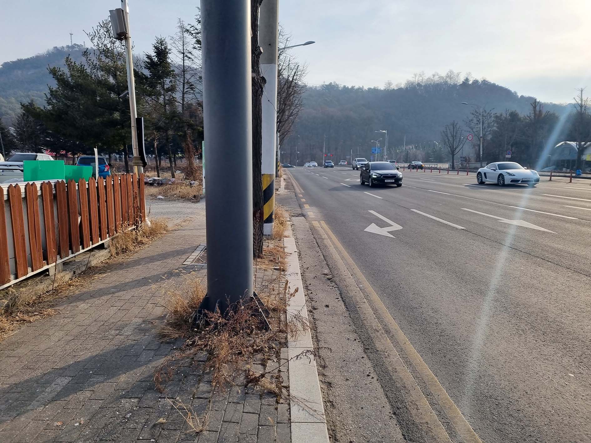 철조망을 빠져나와 도로를 따라 400m 정도 가면 버스 정류장이다.