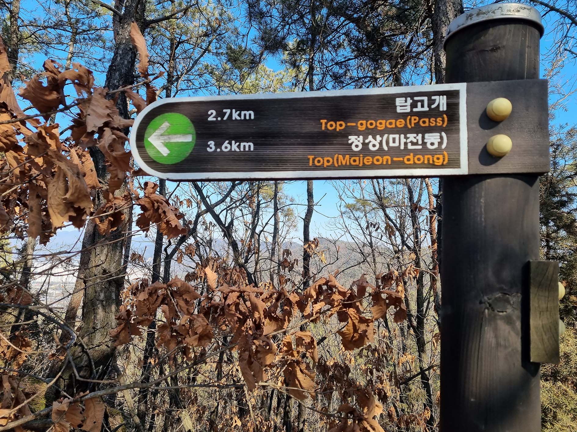 탑고개 사거리 이정표.