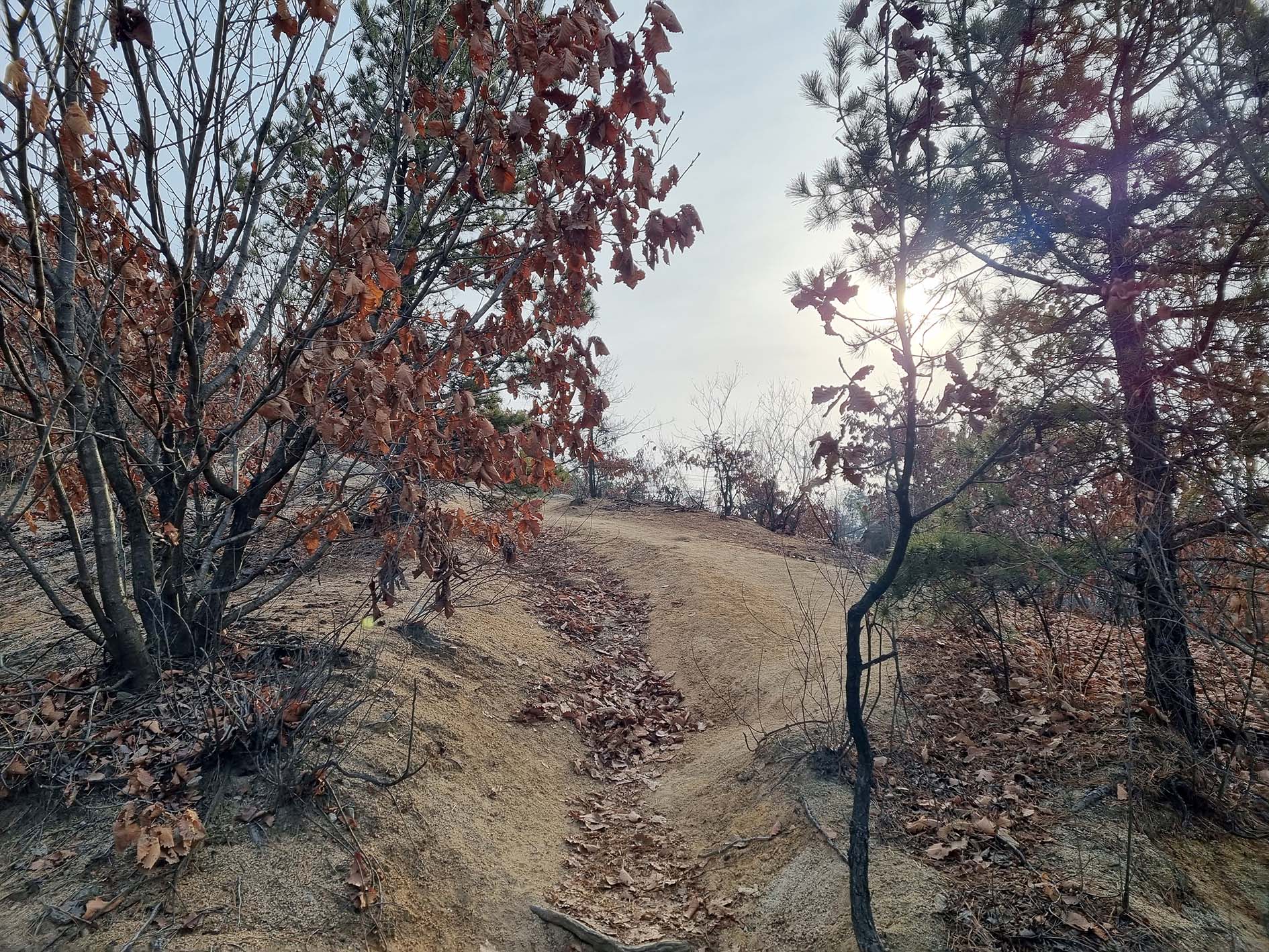 등산로는 소나무 군락 많아서 사계절 푸르름을 간직하고 있다.