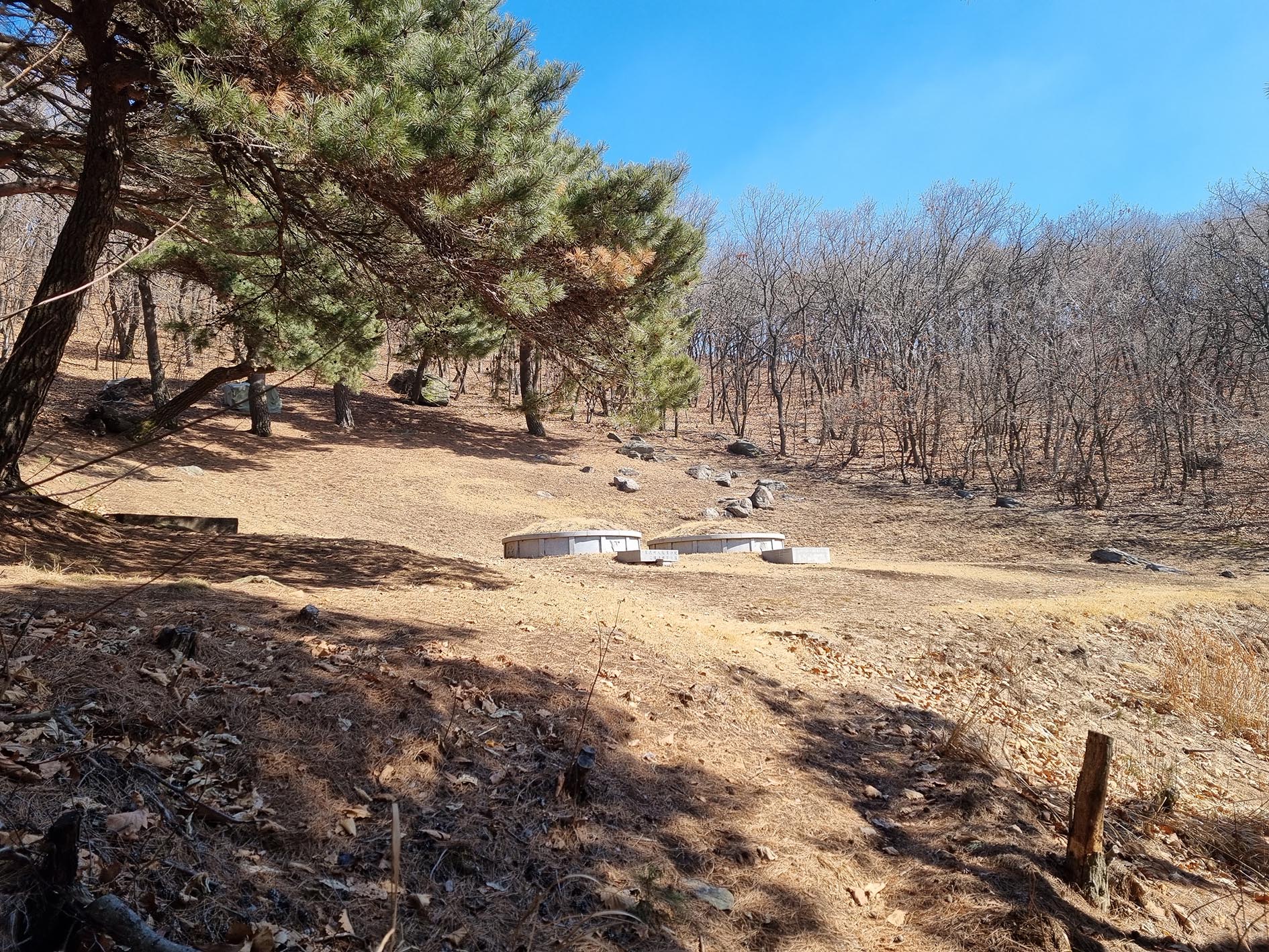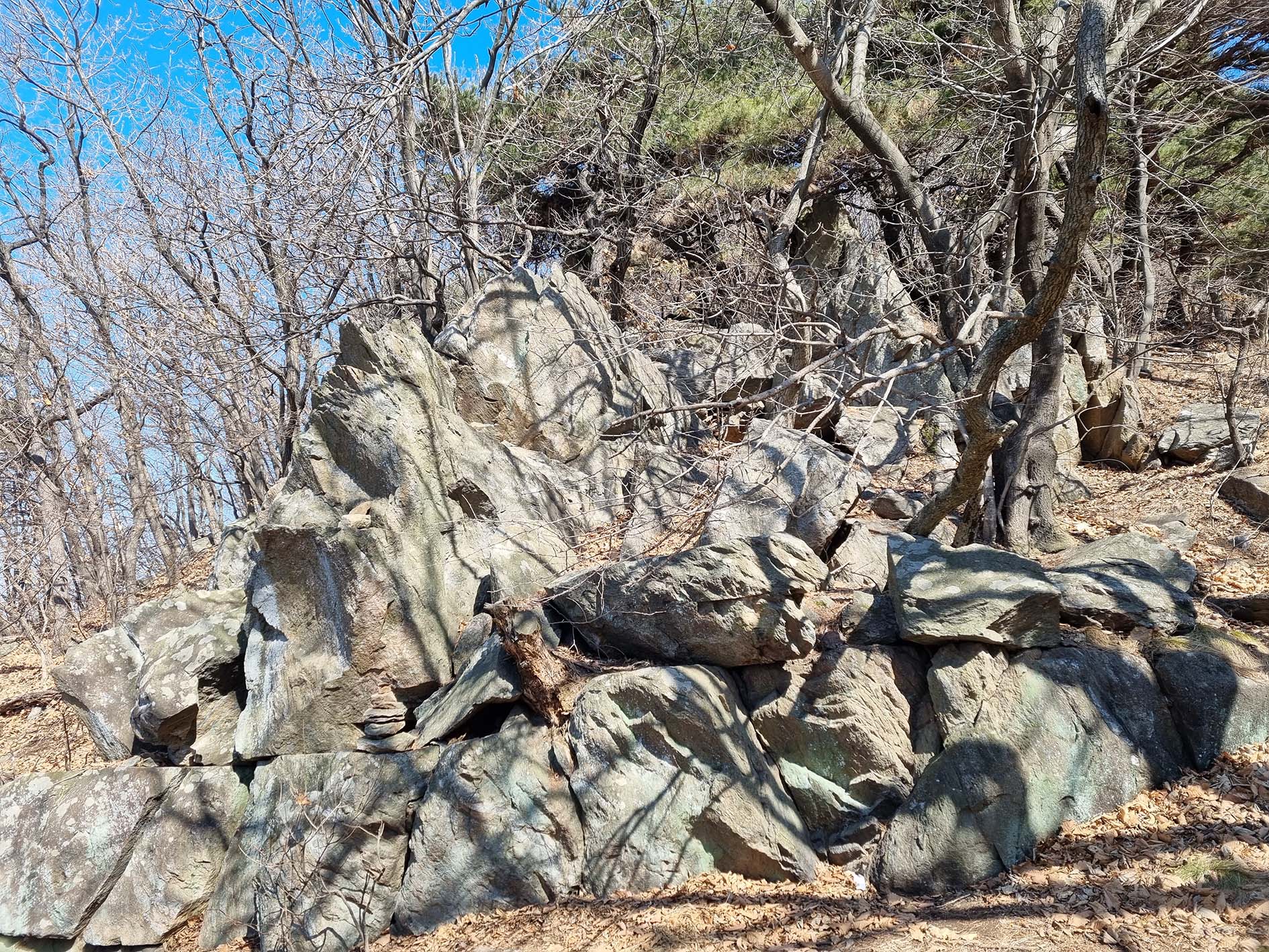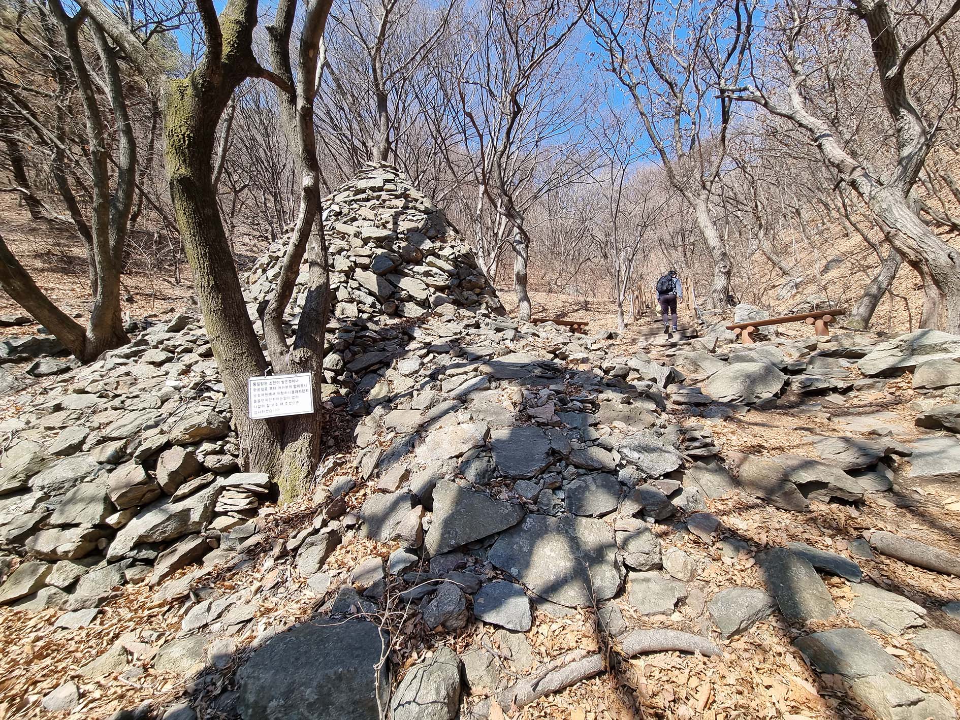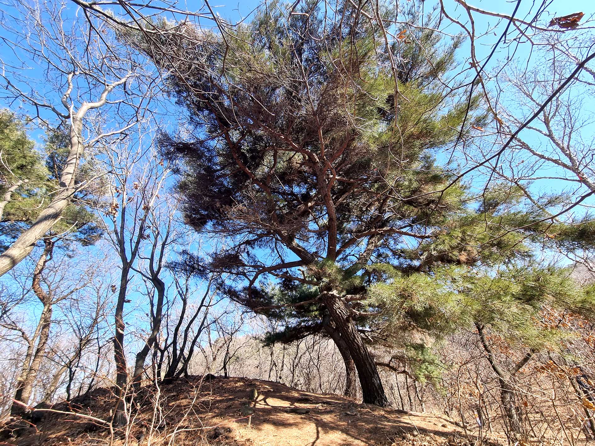 가파른 등산로는 산 중턱까지 이어지며 정상은 마당같이 평평하고 제법 널찍하다.
