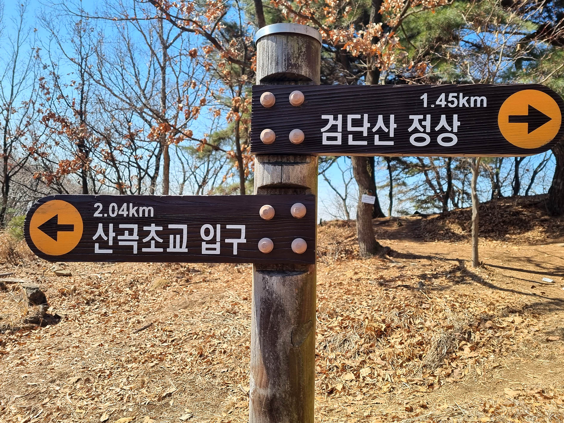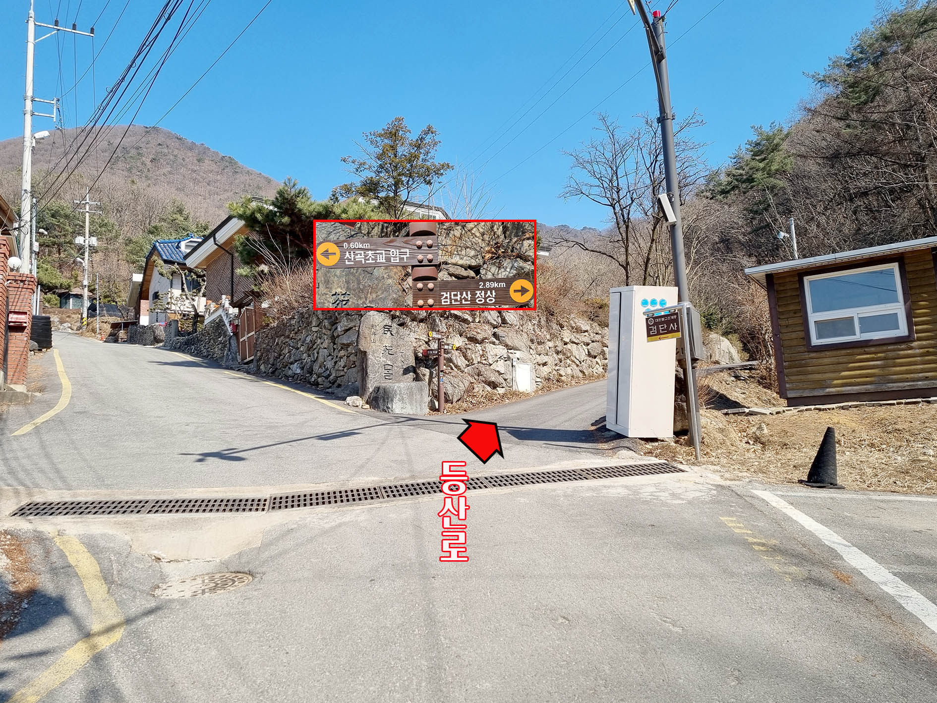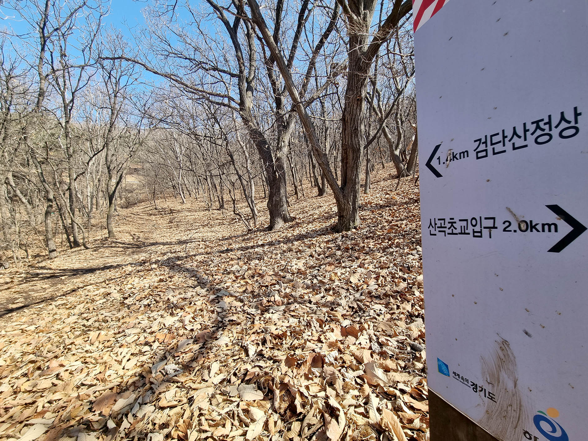 특징: 검단산 산곡동 방면은 산곡초등학교 입간판을 따라 마을로 들어서면 학교 정문을