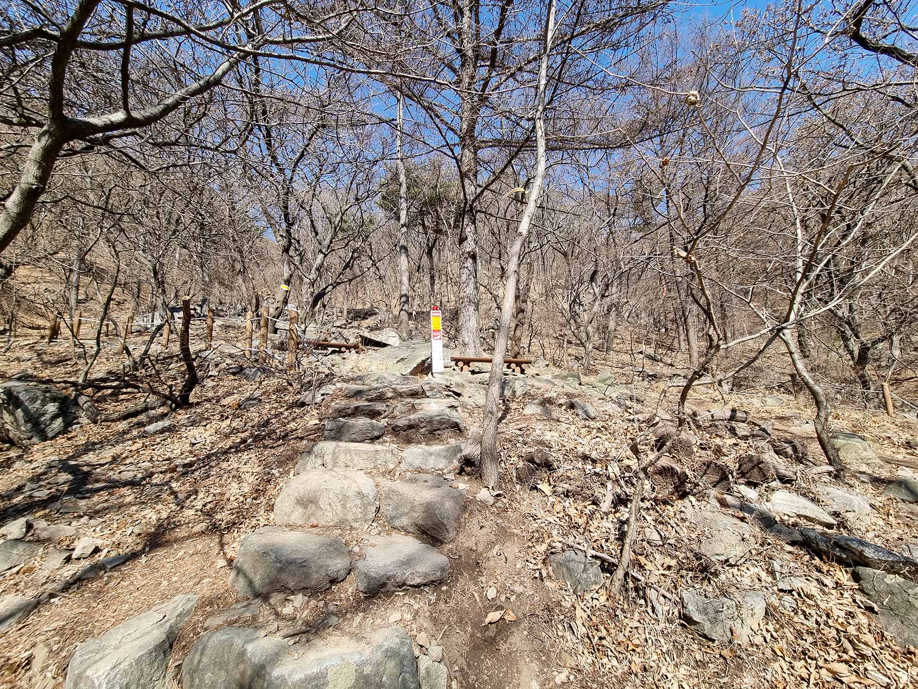 현충탑에서 올라오는 길과 만나는 곰터 약수터 삼거리.