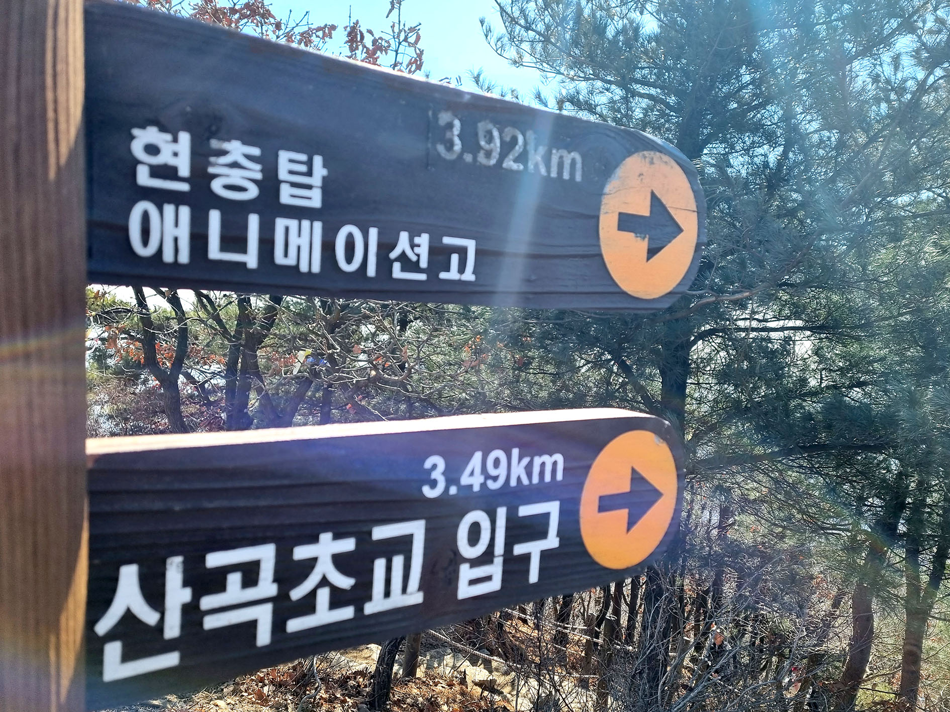 산곡 초교 정문을 지나 만나는 삼거리.(이정표는 따로 없다)