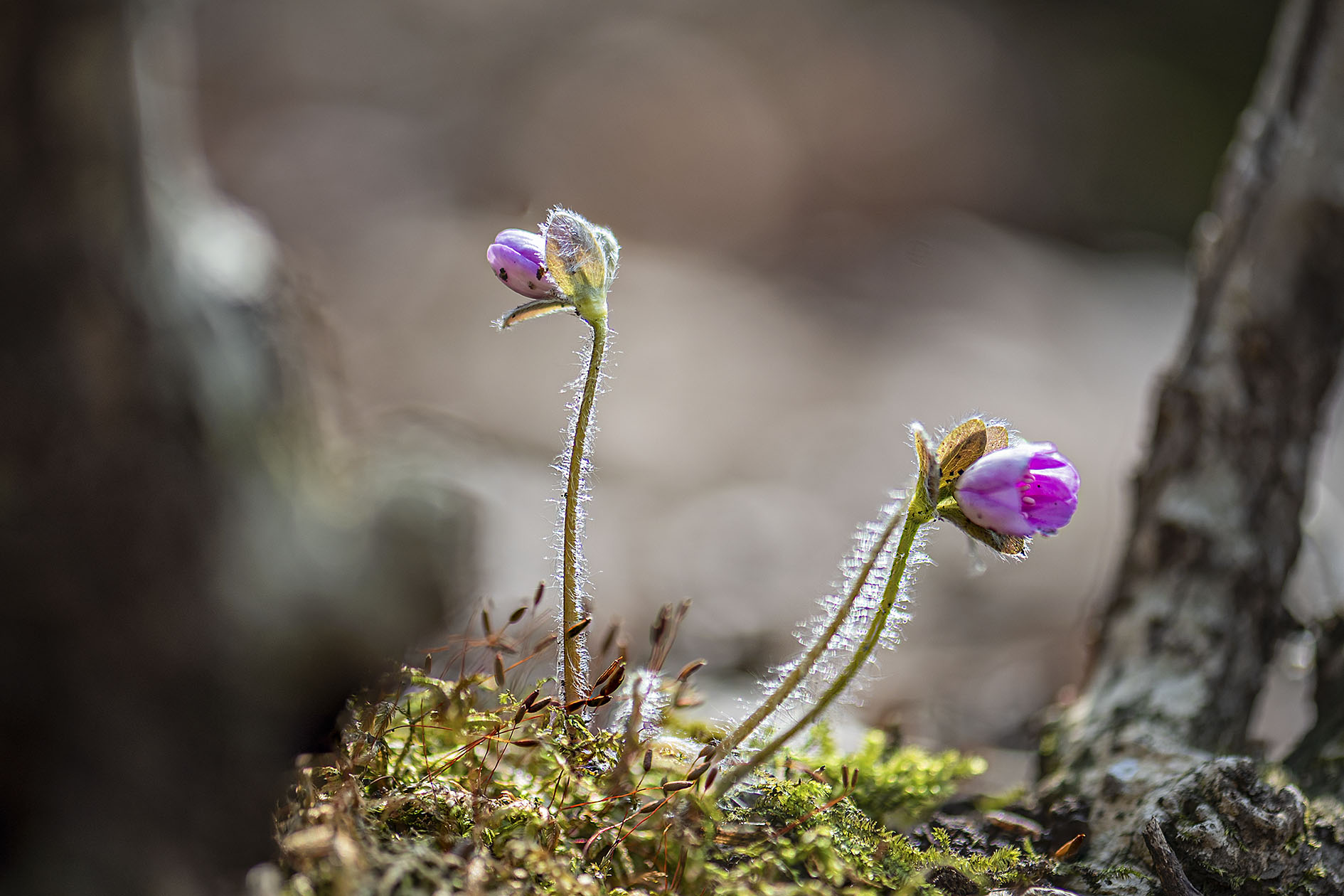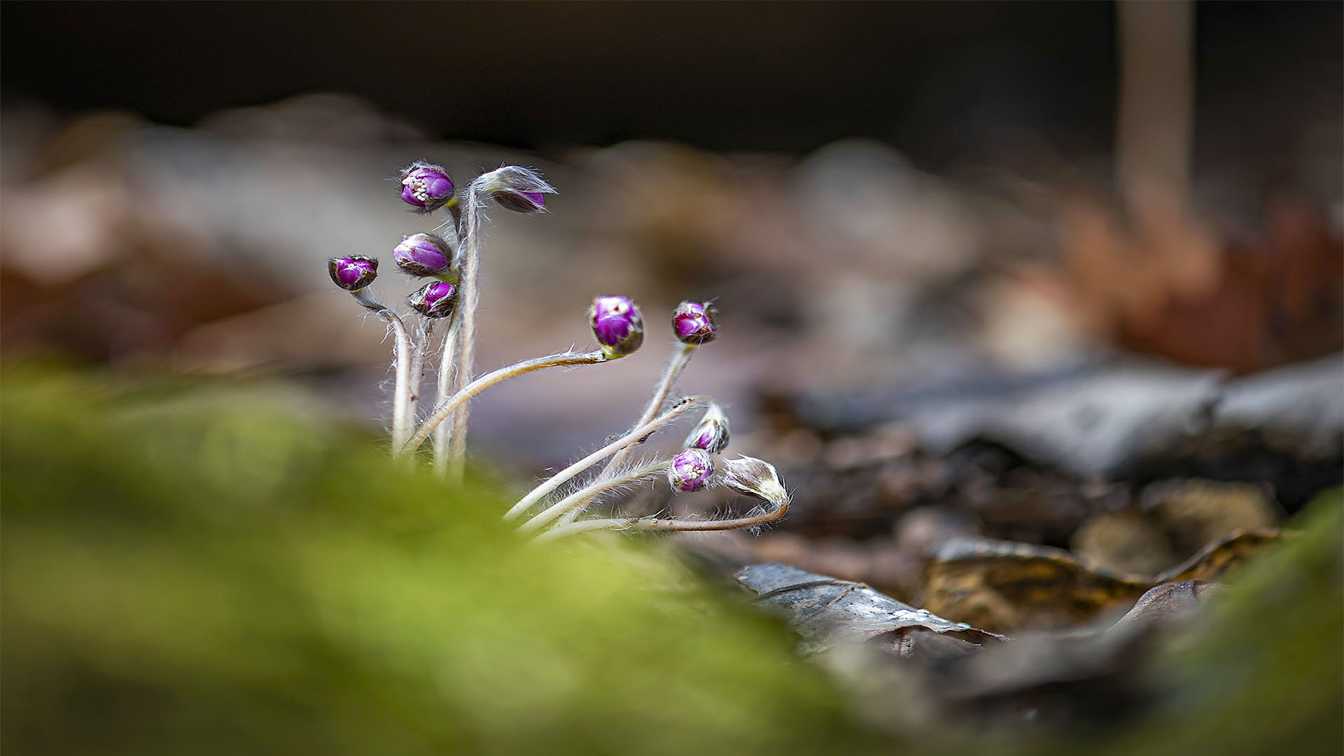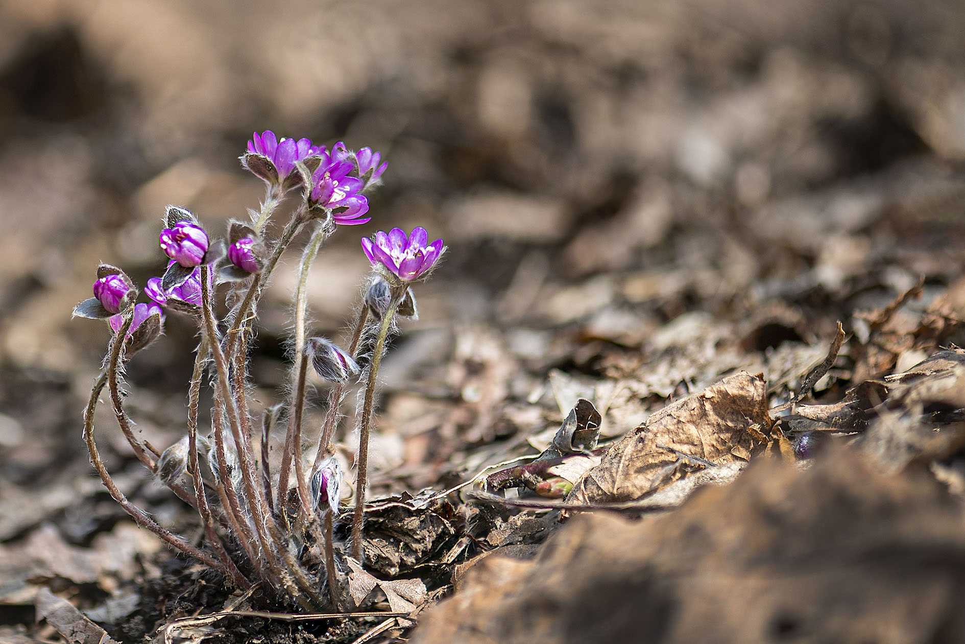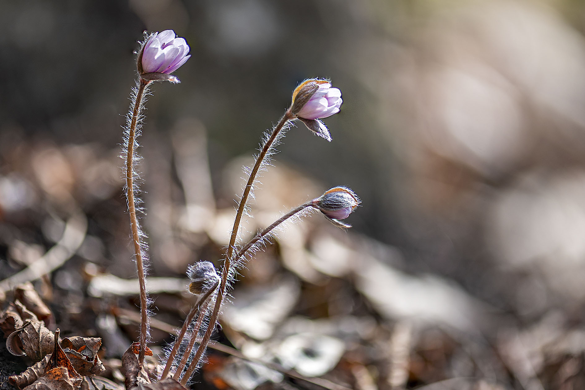 이제 낙엽 사이를 비 짓고 솜털이 보송보송한 노루귀가 눈에 들어옵니다.