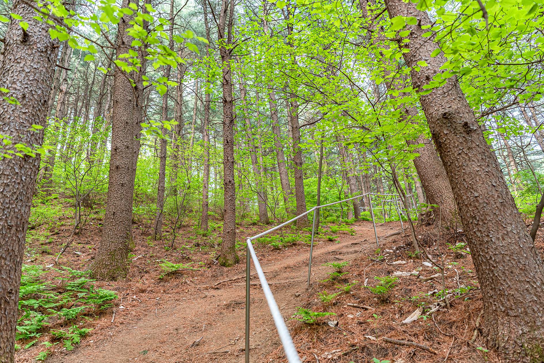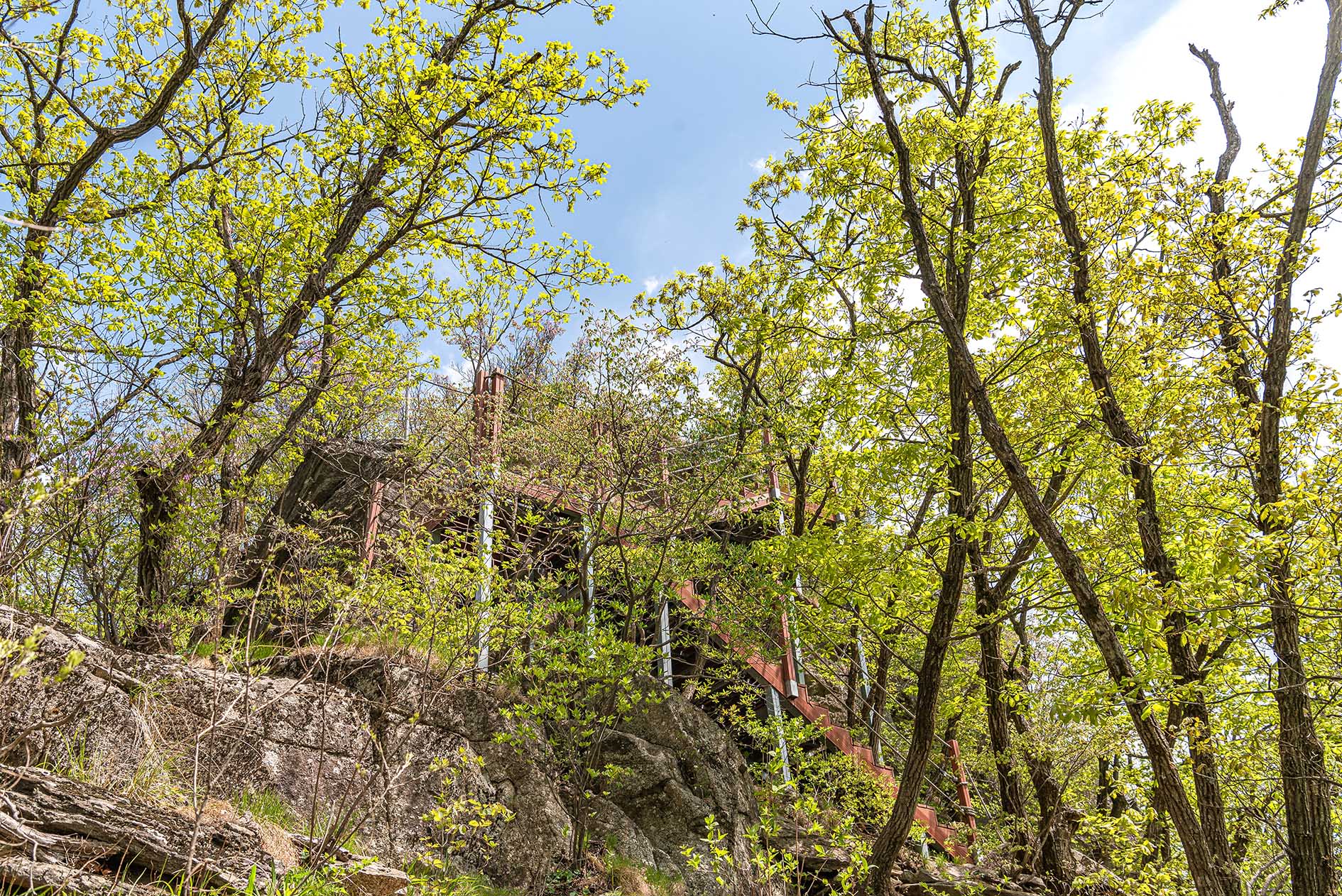 축령산 정상부로 오르는 나무데크.
